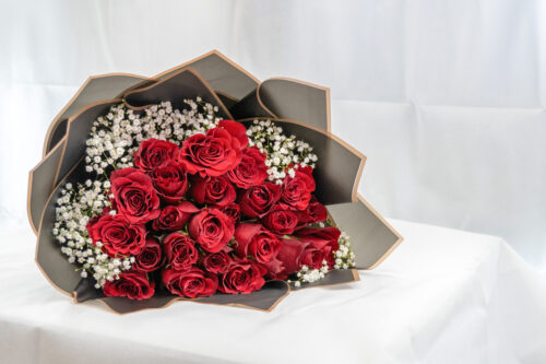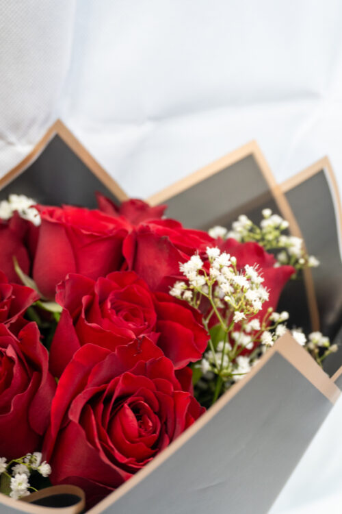 A graceful mix of soft peach roses and pure white deco chrysanthemums, wrapped in airy baby’s breath and fresh greenery of Italian ruscus and eucalyptus. This bouquet feels like a tender embrace—warm, elegant, and quietly radiant. Choose Soraya to express gentle affection and timeless beauty with subtle charm.