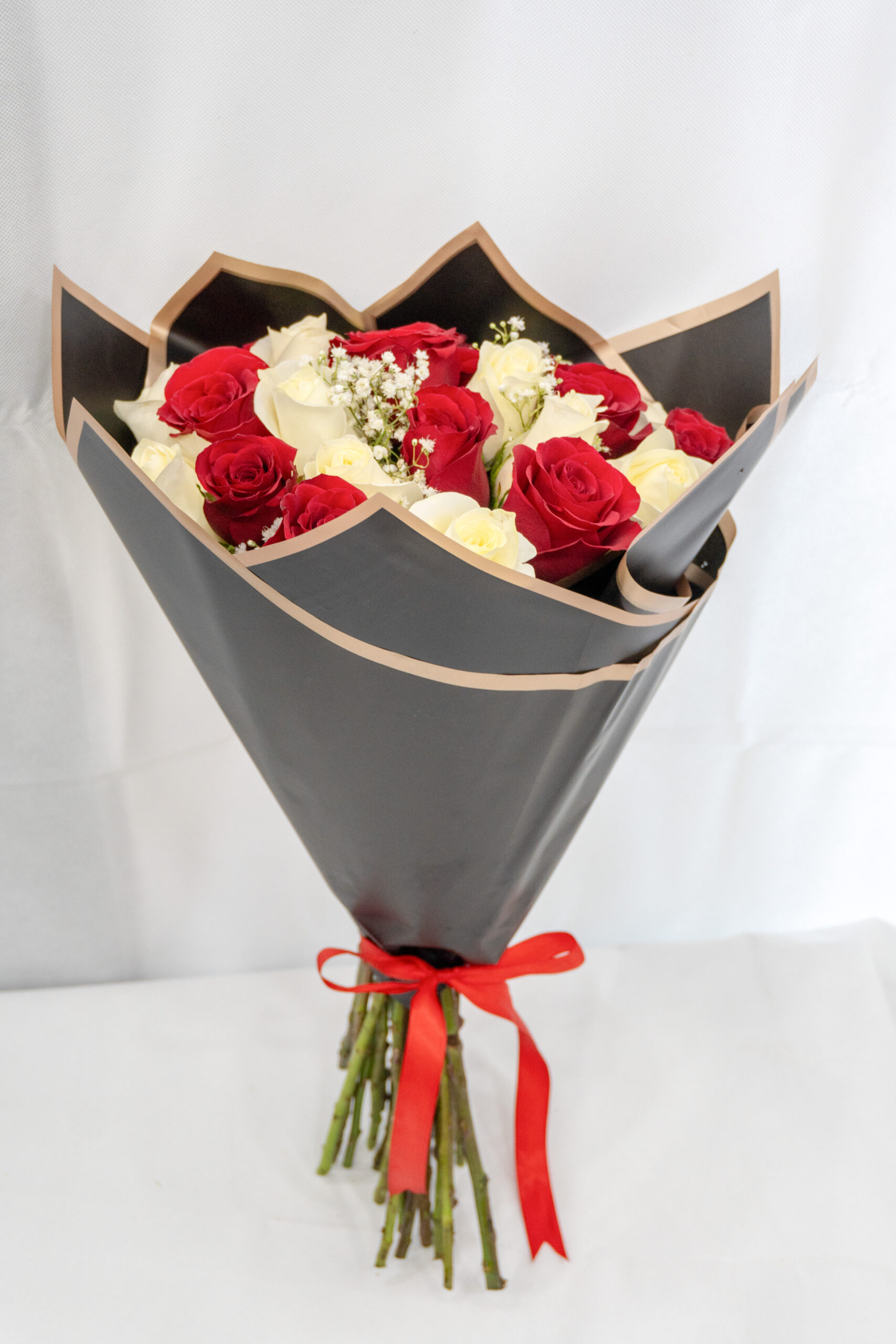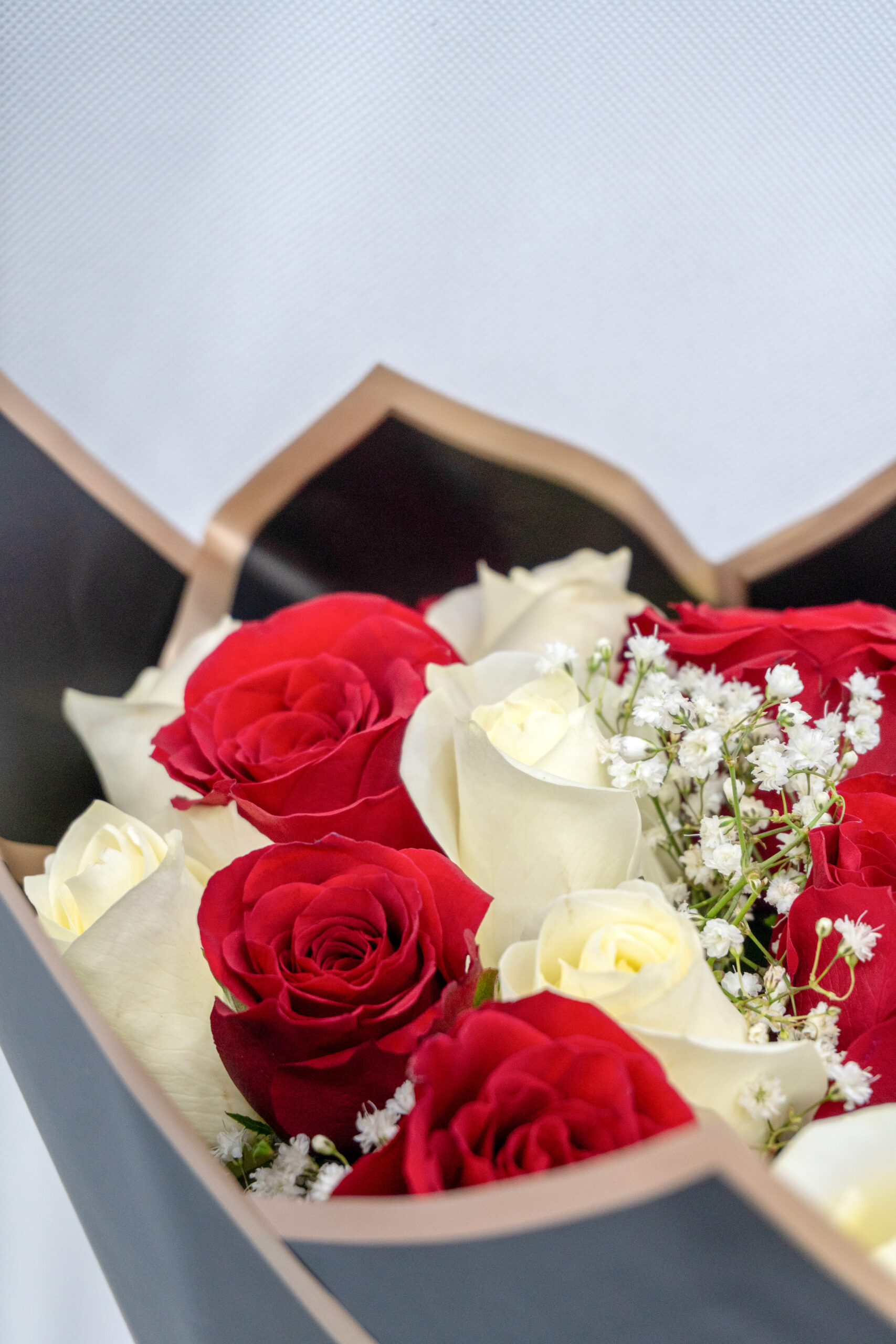 Bold red meets soft white. A classy love story, told in roses. It’s romantic without being over-the-top—think timeless love with a polished twist.