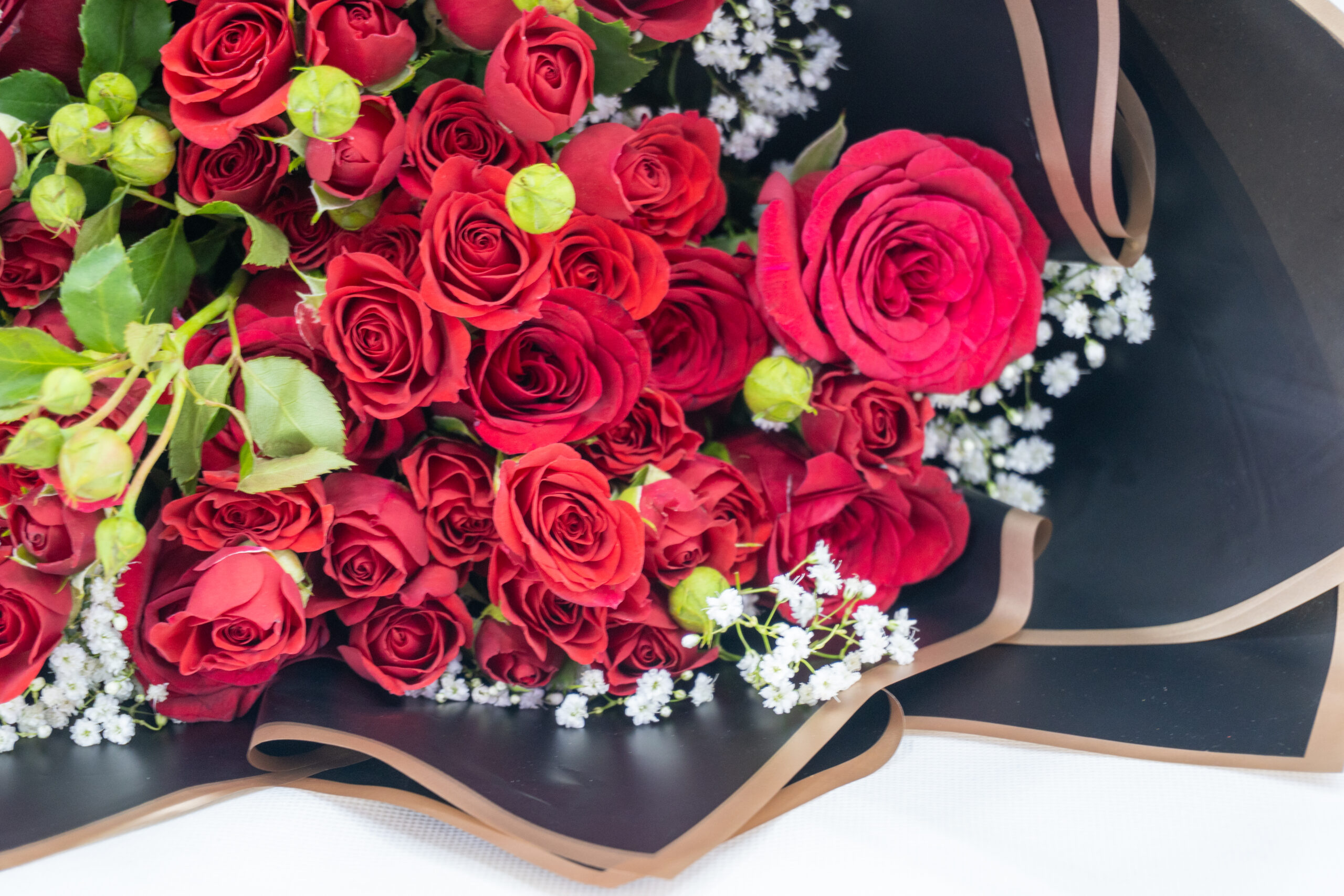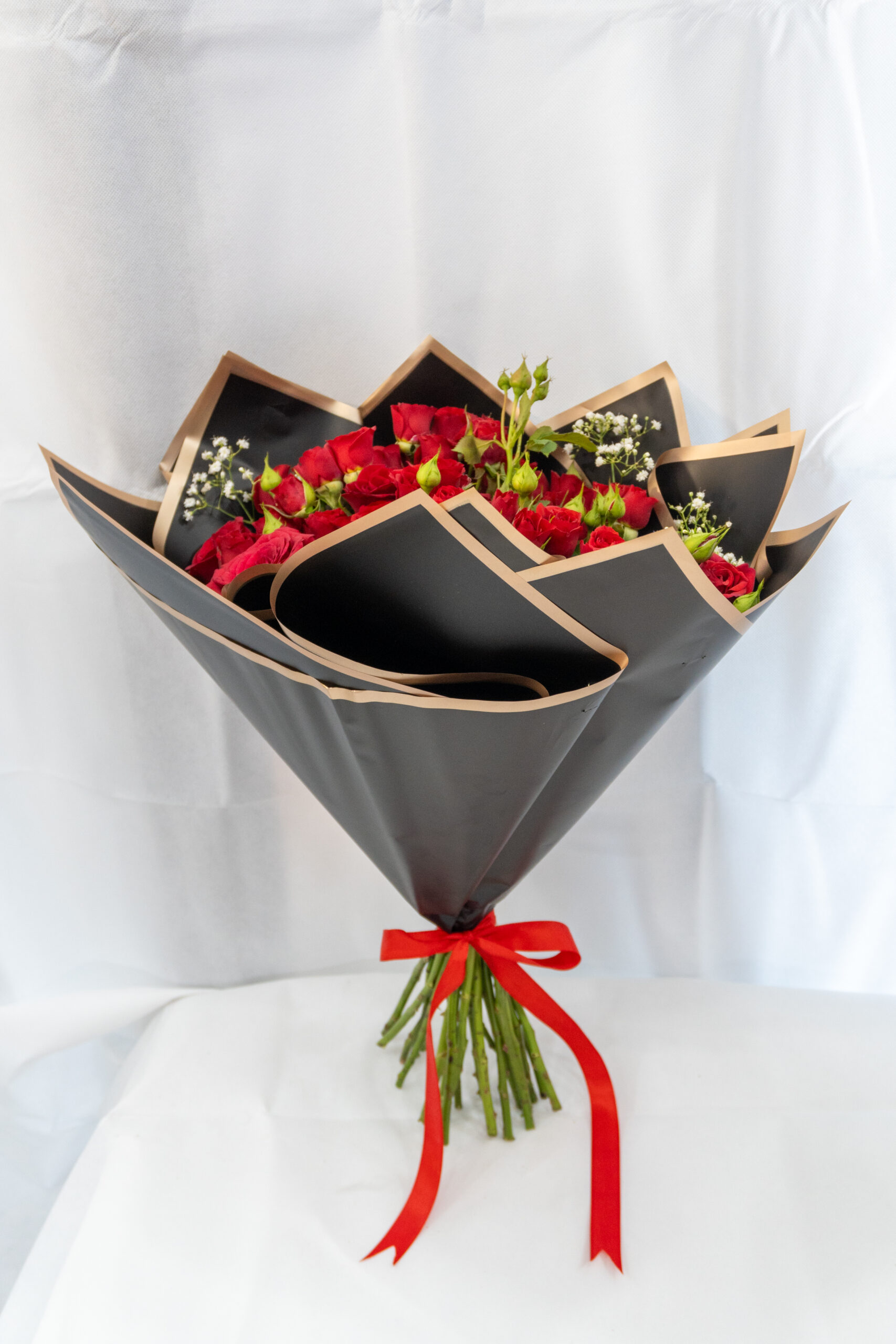 Bold red roses meet playful spray roses for a look that’s classic… with a little extra drama. It’s romantic, full, and definitely makes a statement—because one type of rose just wasn’t enough.