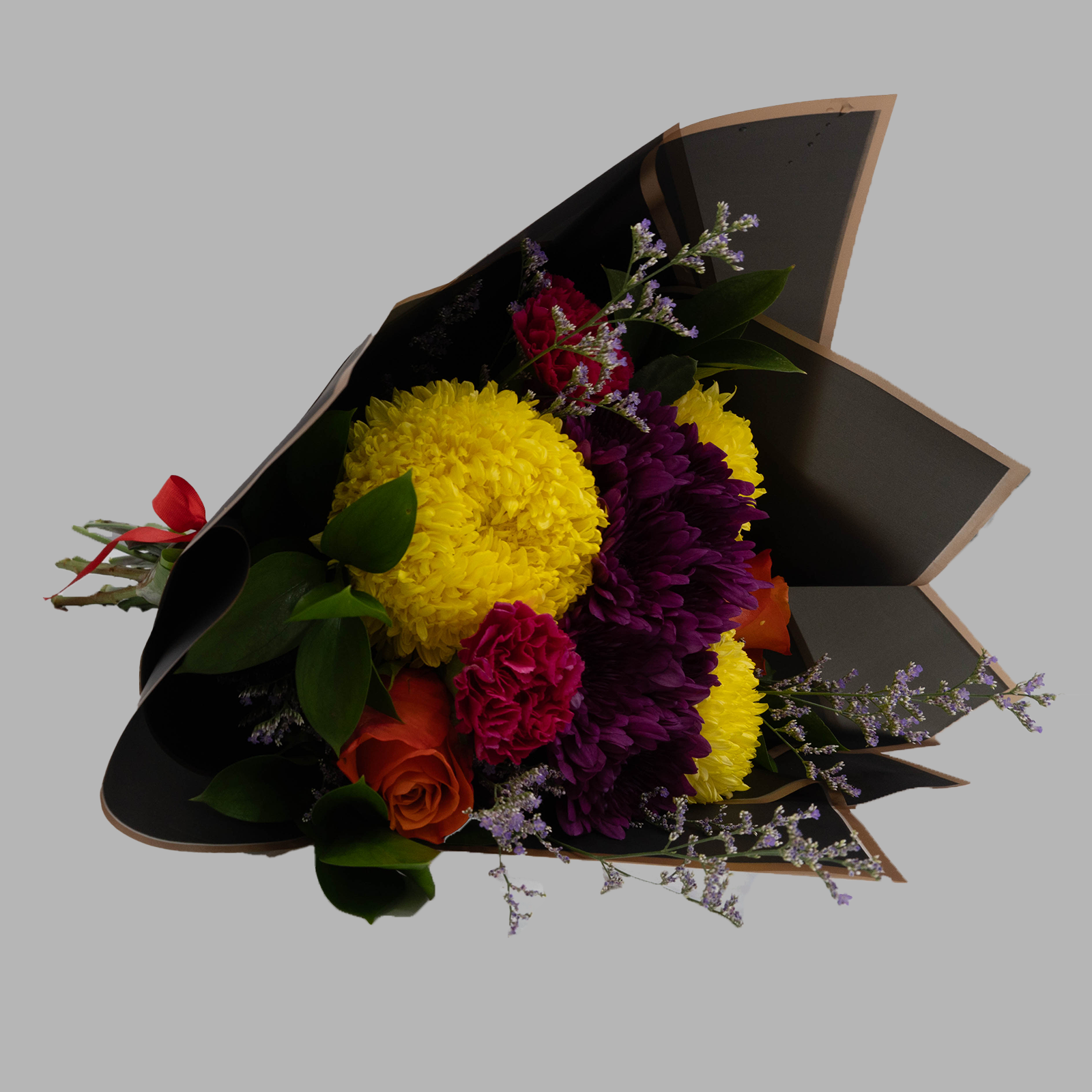 A vibrant blend of deep purple orchids, soft pink roses, bright orange alstroemeria, delicate purple limonium, and lush areca leaves. Like the colors of a glowing sunset, this bouquet brings warmth, beauty, and a splash of joyful energy. Choose Sunset Splash to brighten any day with a touch of nature’s magic and colorful charm.